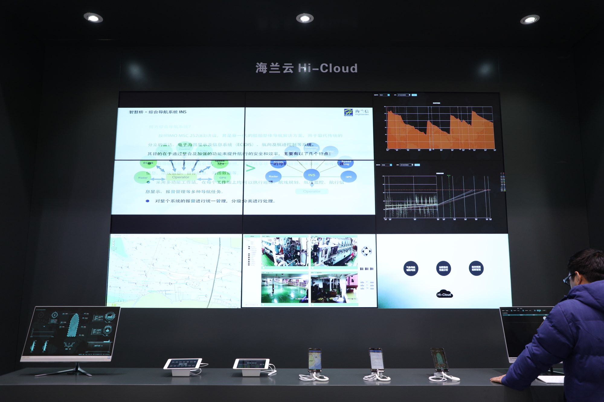 在智能航海區(qū)域,海蘭信聚焦船岸一體化系統(tǒng)解決方案,展示了船舶智能導(dǎo)航系統(tǒng)、Hi-Cloud(海蘭云)、Evolution V5綜合監(jiān)測報警和控制系統(tǒng)等,打破“信息孤島”,有能力為客戶提供船舶智能化綜合解決方案。在智慧海洋區(qū)域,海蘭信呈現(xiàn)“天、空、岸、海、底”海洋立體觀監(jiān)測系統(tǒng),重點展示了近海雷達綜合監(jiān)控系統(tǒng)、海底觀測網(wǎng)系統(tǒng)、無人機動智能平臺系統(tǒng)、國家海域動態(tài)監(jiān)視監(jiān)測管理系統(tǒng)等,為涉海用戶提供定制化的海洋數(shù)據(jù)信息服務(wù),服務(wù)海洋經(jīng)濟發(fā)展,為“一帶一路”建設(shè)提供支撐。