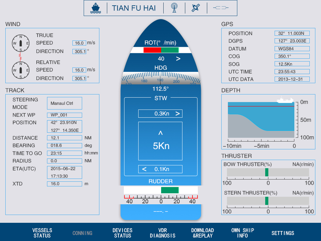 ● 舵機(jī):采集船舶舵機(jī)工作狀態(tài),報(bào)警情況等信息
